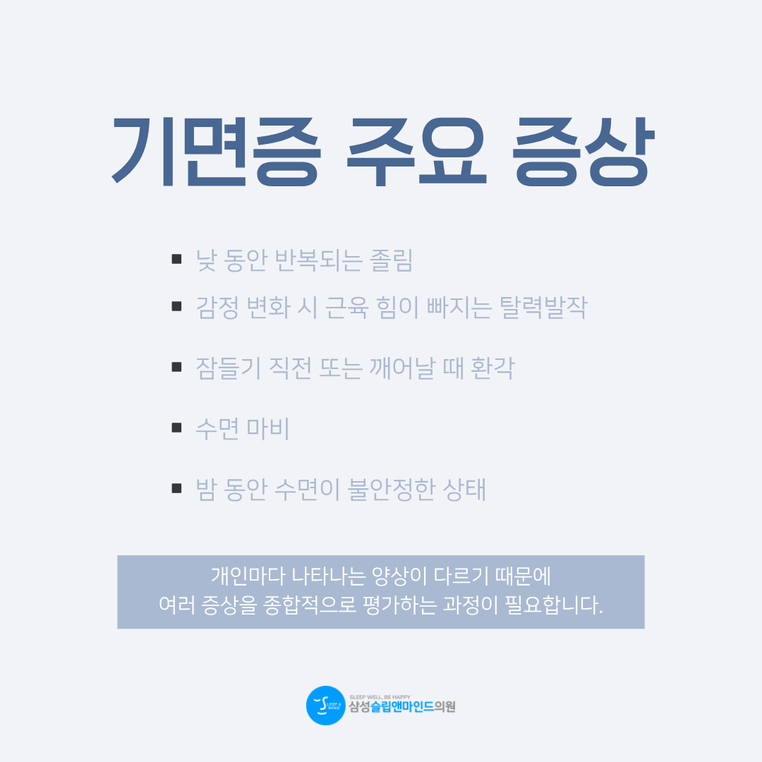 기면증 역시 이러한 증상에서 의심할 수 있는 질환 중 하나입니다.
