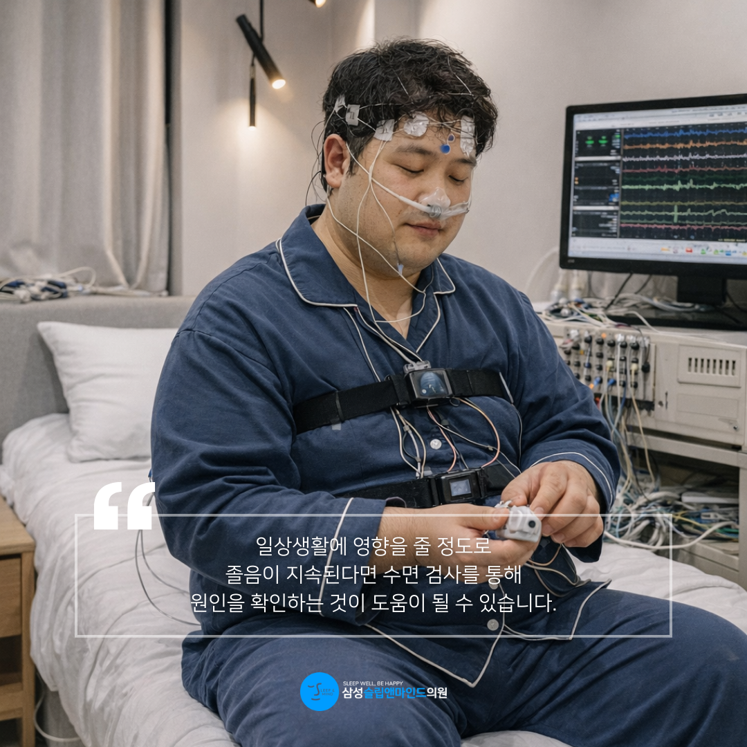 일상생활에 영향을 줄 정도로 졸음이 지속된다면 수면 검사를 통해 원인을 확인하는 것이 필요합니다.