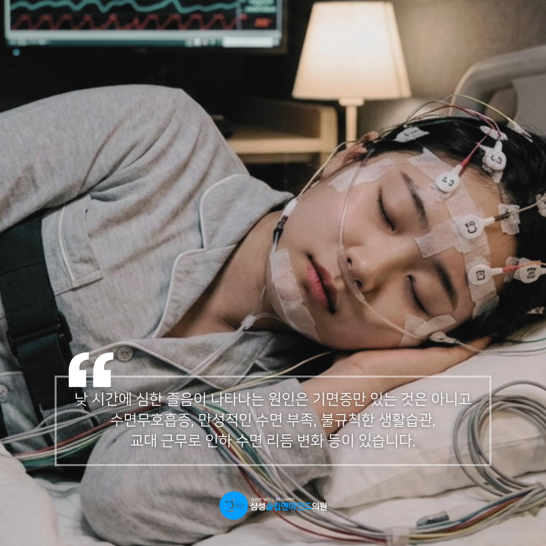 하지만 이러한 졸음이 반복적으로 나타난다면 단순한 피로가 아니라 수면과 관련된 질환일 가능성도 고려해볼 필요가 있습니다.
